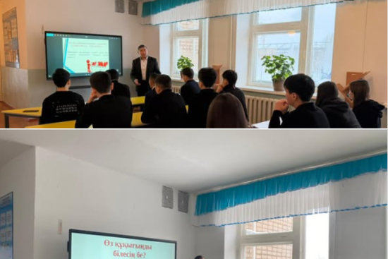 Мамандық таңдау формуласы тақырыбында мектебіміздің кәсіптік бағдар беру жетекшілері Е. Алгожин мен А. Аскерова 10-сынып оқушыларына арналған дәріс сағатын өткізді.