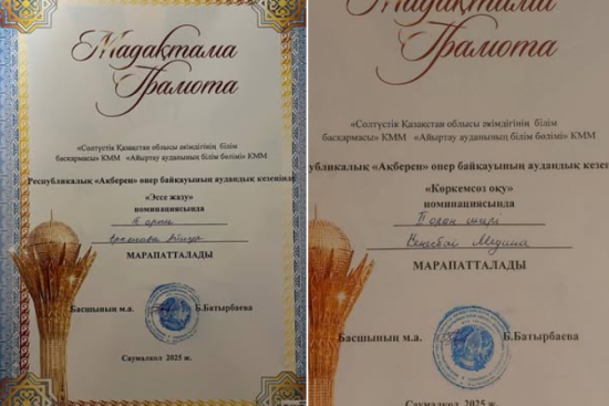 19-қыркүйек күні облыс көлемінде өткен «Махамбет оқулары» "Ұлы арман" сурет салу номинациясы бойынша Саумалкөл қазақ орта мектебінен қатысқан 8-сынып оқушысы Джусупова Дария ІІІ орынға ие болды.