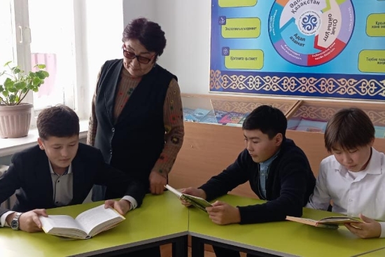 Мектебіміздің кітапханашысы А. Ш. Нурбахтинова «Оқуға құштар мектеп» жобасы аясында 8-сынып оқушыларымен бос уақытта кітап оқу сәтін өткізді.